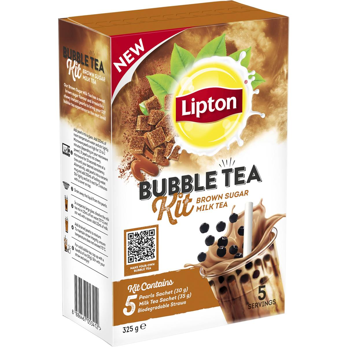 Lipton Bubble Tea Brown Sugar Milk Tea Kit With Pearls Drink Sachets 5 Pack Ebay